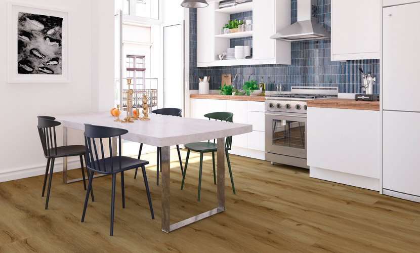 - Confortevole ed accogliente. Caldo e piacevole come il legno naturale e allo stesso tempo tecnico e silenzioso grazie all'isolamento acustico. Essendo al 100% impermeabile, è adatto per cucine e bagni, consentendo l'uso dello stesso pavimento in tutta la casa senza giunture o transizioni antiestetiche.