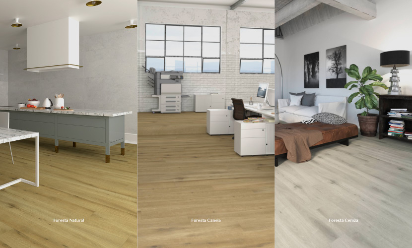 Foresta è un pavimento in vinile in rovere, con un design molto elegante e senza tempo, lungo 153,2 cm e disponibile in 3 colori neutri e naturali (Natural, Canela e Ceniza). Le sue finiture morbide sono perfette per creare spazi interni caldi, senza tempo e adattabili a qualsiasi stile decorativo.