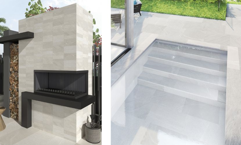 Questa nuova serie è una soluzione integrale In&Out per progetti concepiti con uno stile uniforme. Pietrasanta offre la possibilità di rivestire dalla facciata, alla terrazza o alle aree ricreative esterne, come piscine o barbecue, fino a qualsiasi ambiente interno, con le sue aree specifiche come caminetti, piani di lavoro o scale.