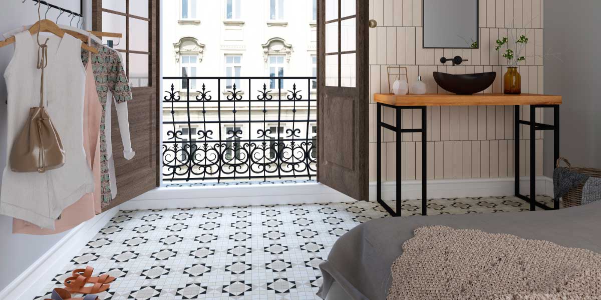 Piastrelle in cemento o idrauliche. I disegni idraulici o i motivi floreali e la finitura opaca di queste piastrelle sono un ottimo modo per aggiungere un accento autunnale all'arredamento senza sovraccaricare lo spazio. Scegli una parete di accento e rendila il punto focale della stanza!