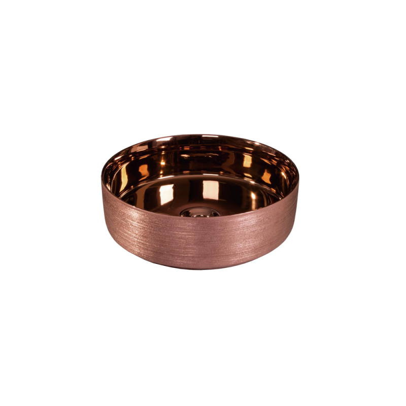 Il suo tono tra il rame e il marrone con la lucentezza metallica che lo caratterizza dona un tocco che con una combinazione di toni ocra e piastrelle beige crea ambienti mistici ed eleganti.