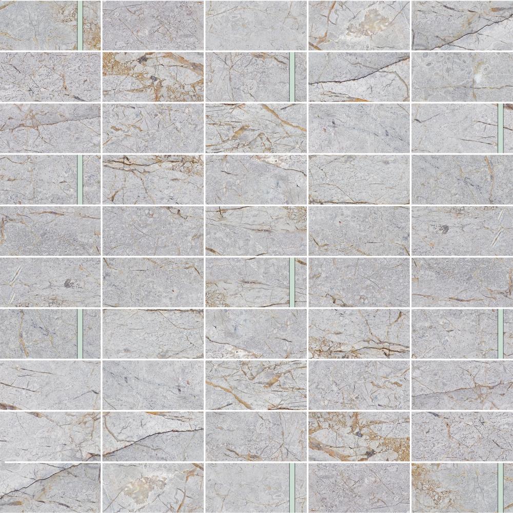 La semplicità del design è arricchita dalle piccole righe argentate che si inseriscono tra alcune tessere.