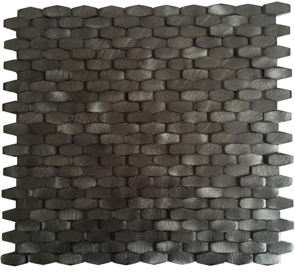 Innovativo mosaico in alluminio a forma di esagoni irregolari in 3D. La finitura spazzolata della superficie fa sì che la luce gli conferisca un aspetto dinamico e seducente. HALLEY GUNMETAL si caratterizza per le sue tonalità di grigio scuro, perfette per essere abbinate a piastrelle di tutti gli stili.