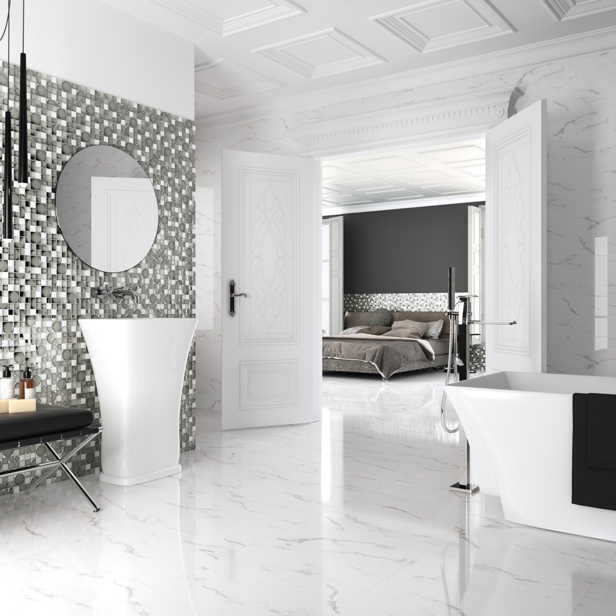 Aquarius racchiude l'essenza degli anni '60, con superfici riflettenti dalle forme circolari che si miscelano con tessere di cristallo e pietra bianca, a creare una casuale e delicata rete, che risulta contemporanea ed allo stesso tempo ricorda l'architettura della metà del XX secolo.