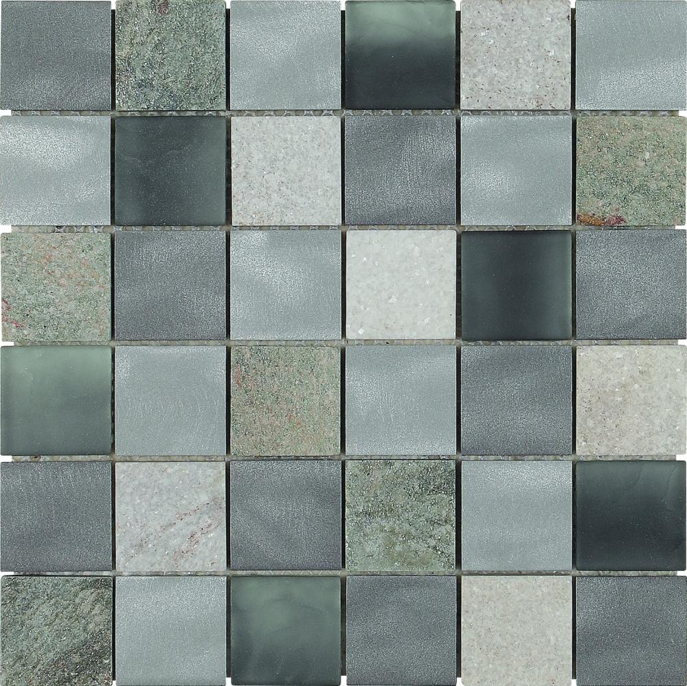 Mosaico fusion: acciaio, cristallo invecchiato e una originale pietra che spicca per i riflessi delle miche. Anche in versione copper, in toni più caldi.