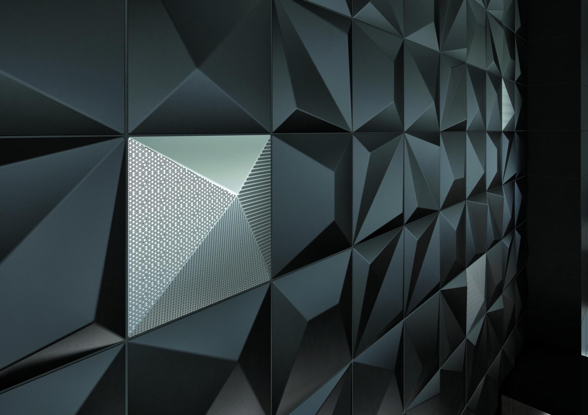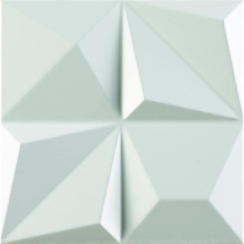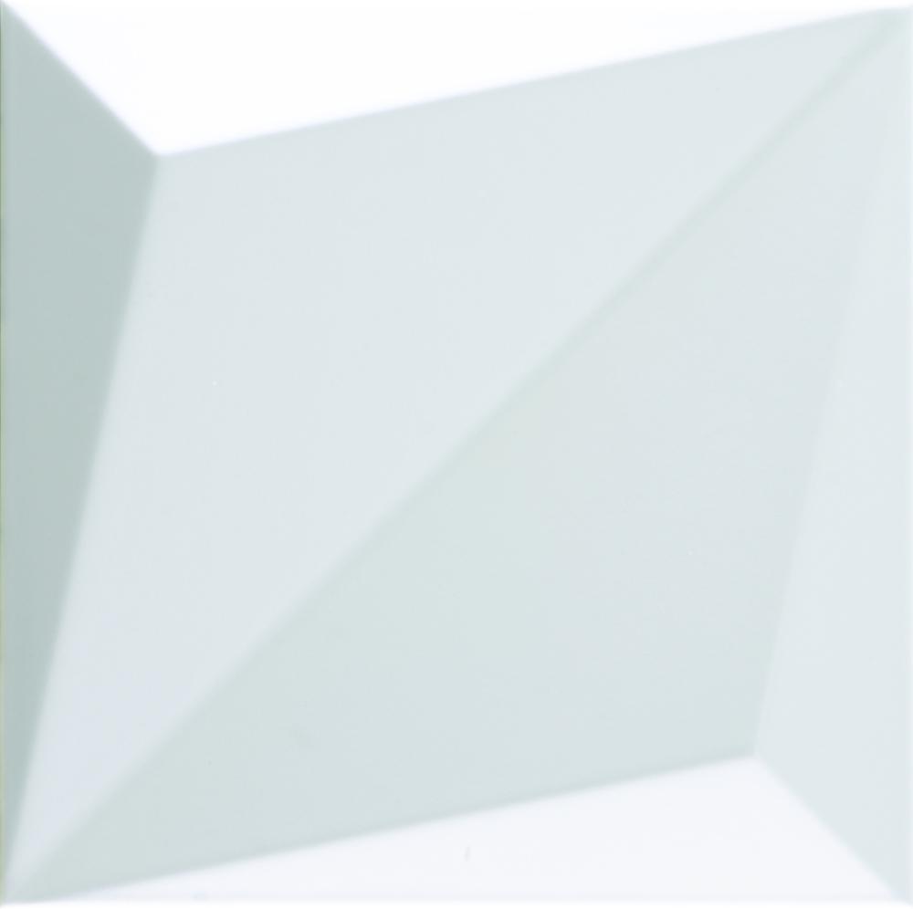 Plain, 25x25 format, white body tile, serving as the base for the new 25x25, ceramic 3D collection. Matt-black colour.