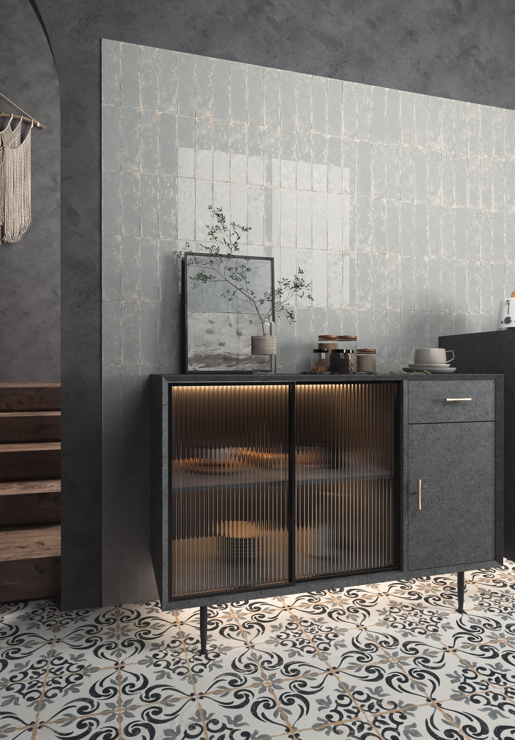 Splendida piastrella in gres porcellanato formato 20x20 cm che reinterpreta con delicatezza i motivi idraulici valenciani, con disegni vegetali e curvilinei utilizzabili singolarmente o in combinazione con gli altri decori della serie. Questo pezzo si distingue per le pennellate in una tonalità grigio profondo, sobria ed elegante, e per la finitura vetrosa che dona rilievo e profondità, valorizzando l’estetica e offrendo una sensazione di raffinata...