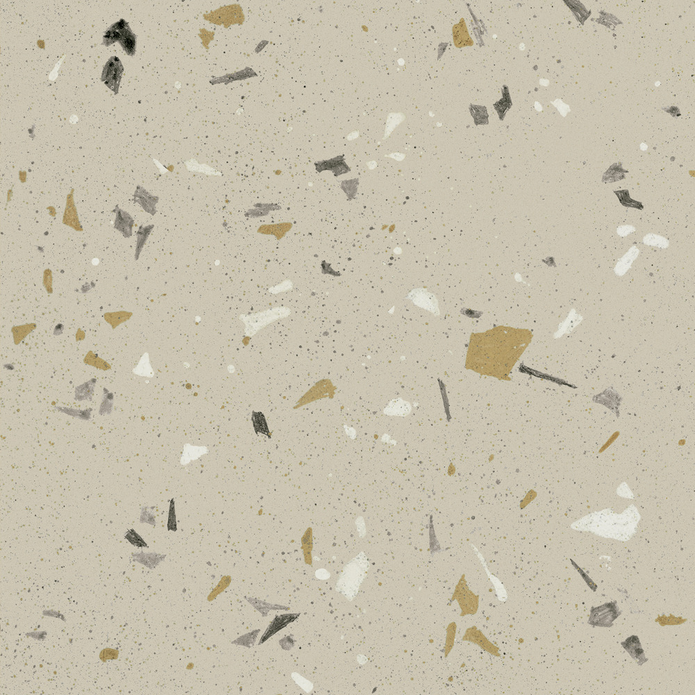 Piastrella in gres porcellanato 20×20 cm, ispirata al terrazzo tradizionale e realizzata con pennellate disegnate a mano. Questa tonalità dai riflessi beige si distingue per il suo fondo caldo e naturale, su cui si dispongono frammenti ocra, dorati e grigi, che creano contrasto e ricchezza visiva. La smaltatura Soft&Safe garantisce un tocco setoso e sicurezza d’uso anche in ambienti umidi.