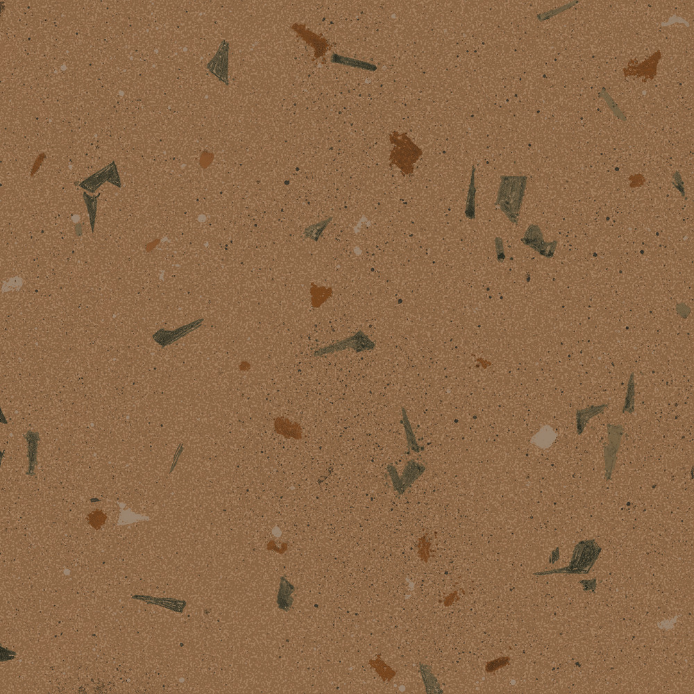 Nel formato 20×20 cm, questa piastrella in gres porcellanato offre una reinterpretazione artigianale e fortemente artistica del terrazzo classico. Questa tonalità si distingue per la sua forza visiva, con frammenti dipinti a mano in tonalità verdi, rossastre e beige su uno sfondo terroso intenso ma caldo. La smaltatura opaca Soft&Safe offre una sensazione setosa al tatto e garantisce funzionalità e sicurezza anche in ambienti umidi.