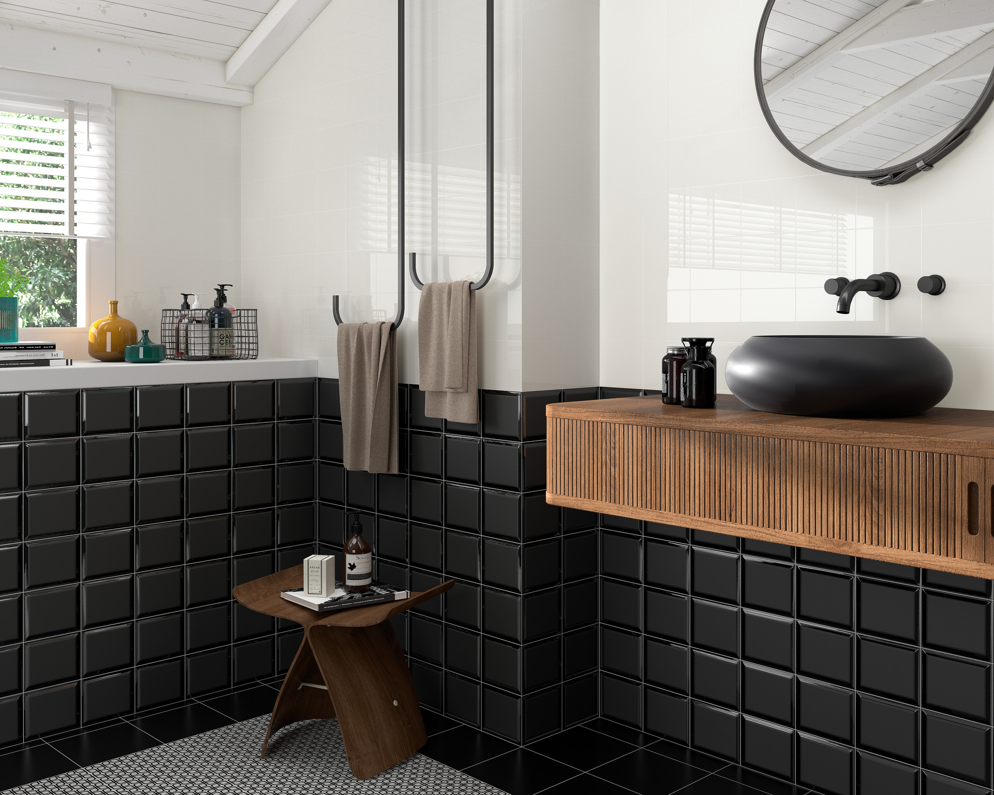 I motivi geometrici sono una tendenza che dura nel tempo. Questo motivo in gres porcellanato gioca tra il positivo e il negativo, lo yin e lo yang, per decorazioni autentiche. È il complemento ideale per le piastrelle White e Black e anche come pavimento per le stanze in cui si impiega una piastrella di piccolo formato, stile metro. Grazie alle sue alte prestazioni tecniche, è una piastrella facilissima da pulire e molto resistente. Con una resistenza allo scivolamento di classe 2, è adatta...