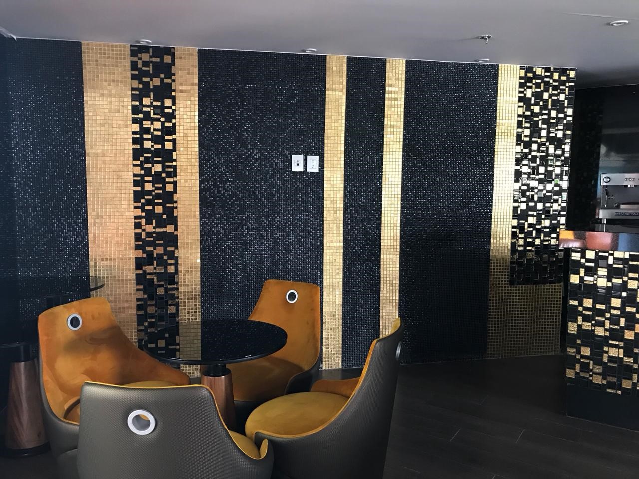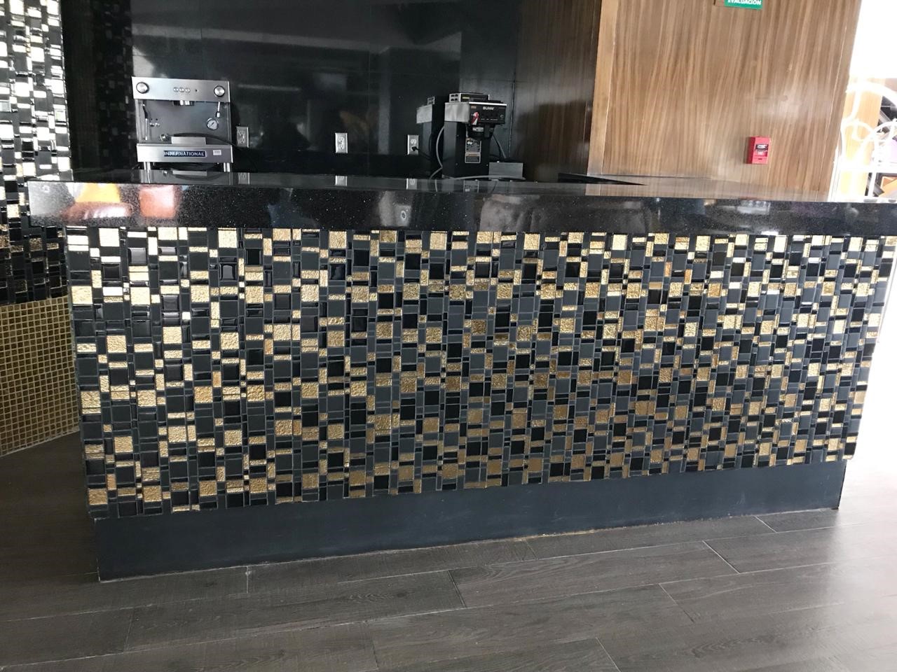 Come contrappunto, nel Lobby Bar l'ospite trova il luogo perfetto per un rilassante dopolavoro. L'arredamento, dominato dai toni del nero e dell'oro, crea un'aura di glamour con un tocco chic. Assaggia i migliori bicchierini di tequila in uno spazio esclusivo, in cui spiccano il bar e le pareti decorate con il mosaico di Cleopatra. Questo pezzo di vetro, nero e oro, combina diversi rettangoli di varie dimensioni.