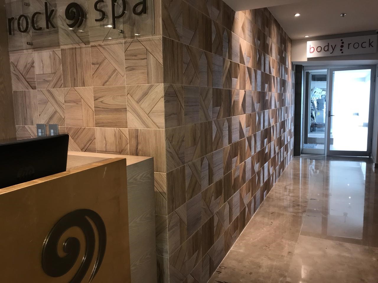 Per completare, il Lobby Bar è realizzato con piastrelle Origami Black e Origami Gold, sempre della serie Shapes. Tutto sommato, è possibile ottenere un'estetica secondo il DNA Rocketo di Hard Rock.