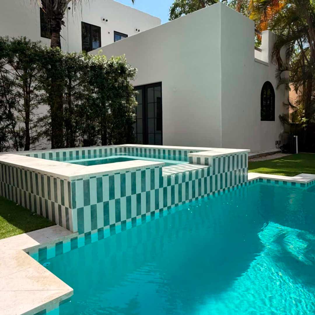 Questo progetto di piscina, progettato da Nathalie Capo a Miami, ridefinisce lo spazio esterno con un approccio contemporaneo ispirato alla tradizione mediterranea. Con una chiara influenza moresca, l’architettura bianca e i volumi puri fungono da sfondo a un design in cui la ceramica diventa protagonista nella piscina, apportando ritmo, texture e carattere.