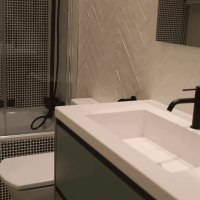 Progettare 2 bagni e una lavanderia funzionale per l'influencer Verdeliss e la sua grande famiglia è stata una sfida. Piastrelle e mosaici per trasmettere modernità e aggiungere atemporalità a una casa in cui le premesse dovrebbero essere la durabilità e la facilità di manutenzione.