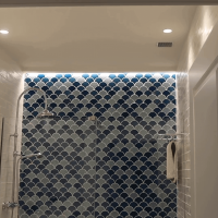 Allo stesso modo, i rivestimenti decorati creano 2 bagni totalmente diversi ma in perfetta armonia. In uno dei bagni, i concetti taoisti di Yin e Yang regnano nello spazio. Il secondo bagno, invece, ispirato al mare, offre un ambiente perfetto per creare la zona relax senza uscire di casa.