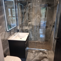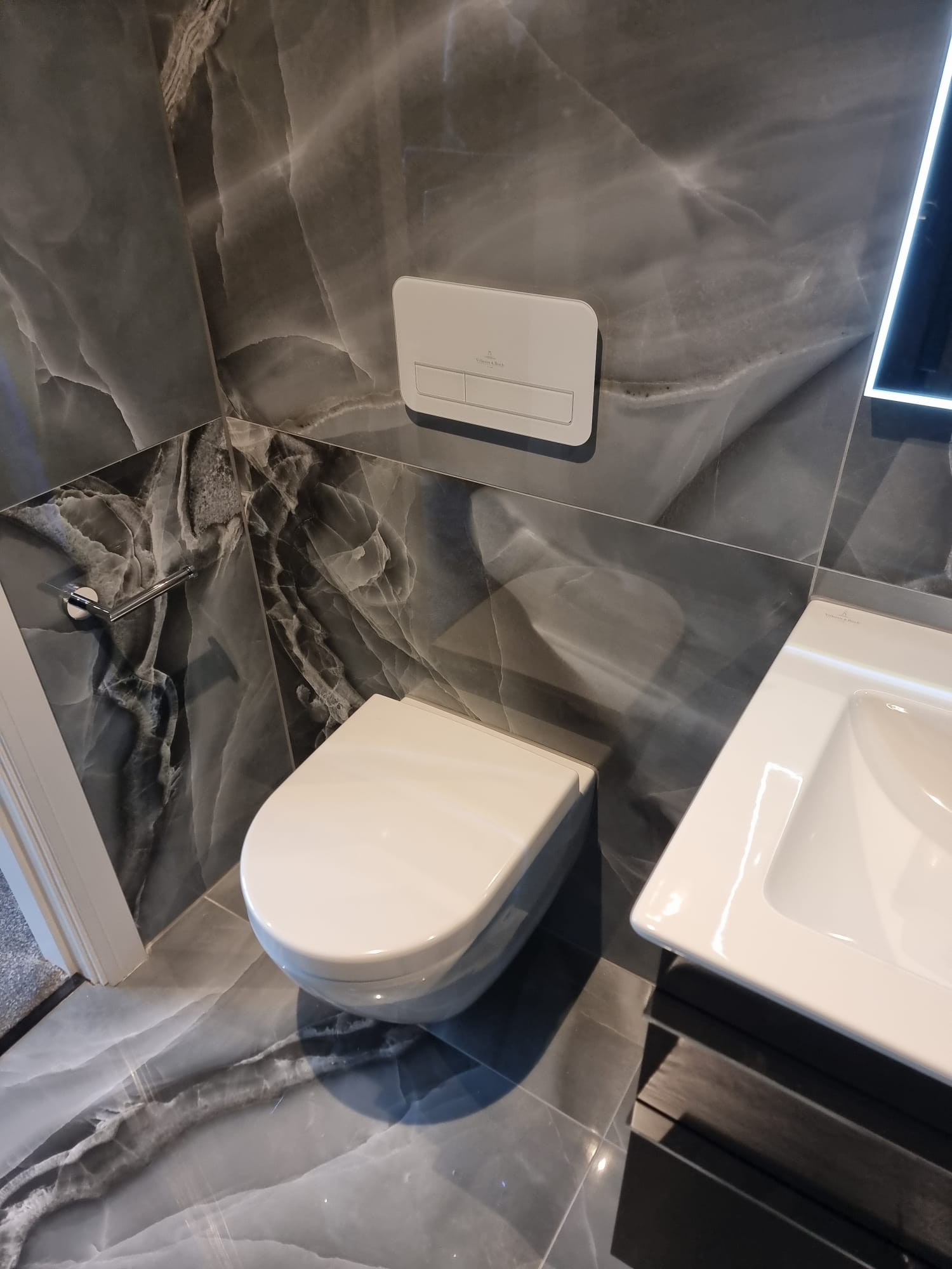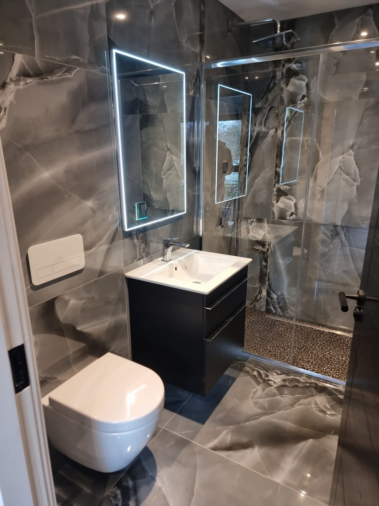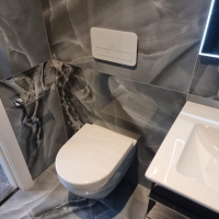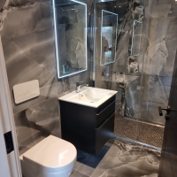 Questa volta, l'azienda inglese LPM Bathrooms & Tiles ha scelto il pezzo Selene Dark per rivestire il bagno di una stanza privata. Questa delicata piastrella, in formato 90x90 con aspetto marmoreo, trasmette carattere e raffinatezza grazie al suo tono grigiastro.