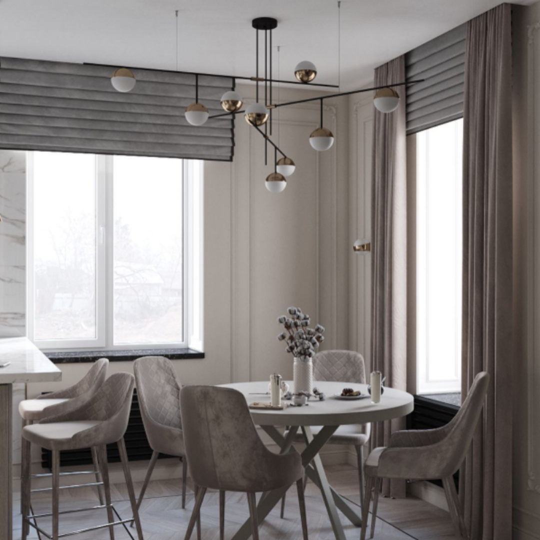Pertanto, la scelta vincente del colore grigio in combinazione con altre tonalità, materiali e finiture conferisce alla casa un aspetto originale e insolito. Attraverso questo design, il progetto inspira freschezza e gioia. I dettagli grigi completano perfettamente l'interno, in quanto ammorbidiscono e uniformano i colori vicini.