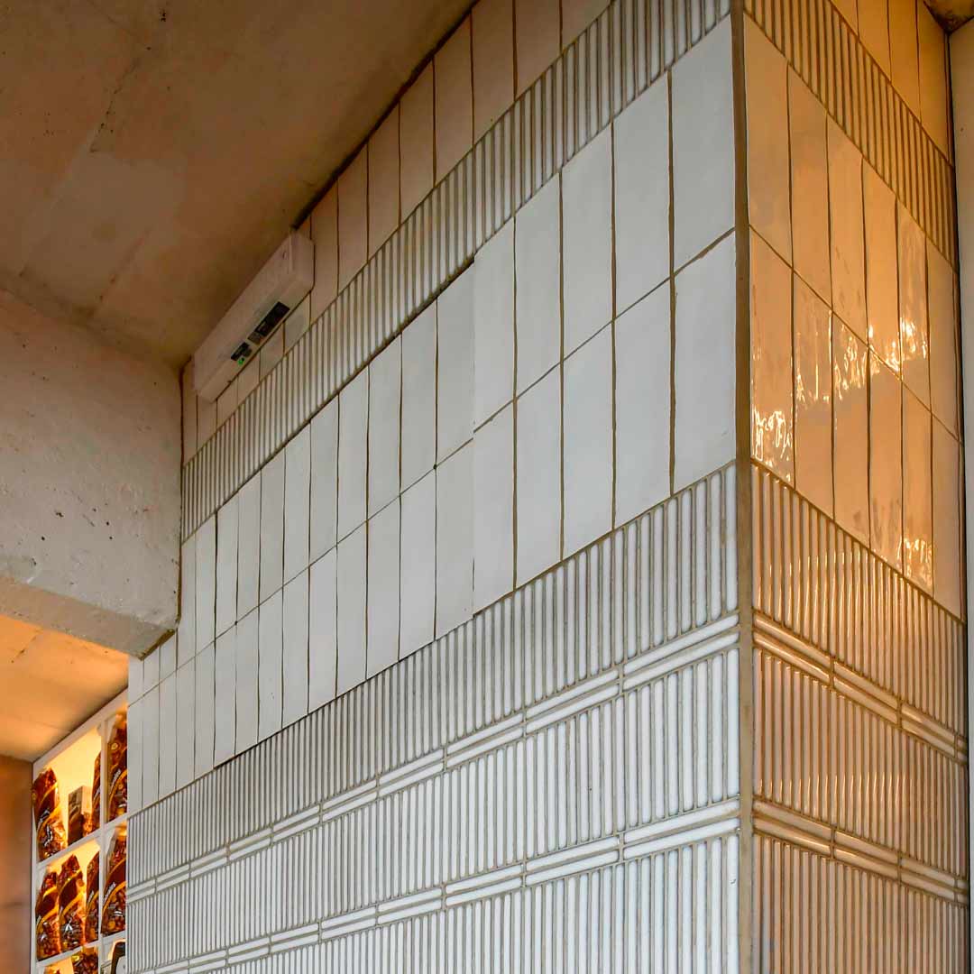 Il risultato è molto attraente dal punto di vista visivo, in quanto le pareti sono molto appariscenti, con le piastrelle effetto dita posizionate come bordo e le nostre piastrelle in gres porcellanato Tabarca che spezzano l'effetto nella direzione opposta, aggiungendo complessità e dinamismo a tutte le pareti, un risultato che ci piace molto!