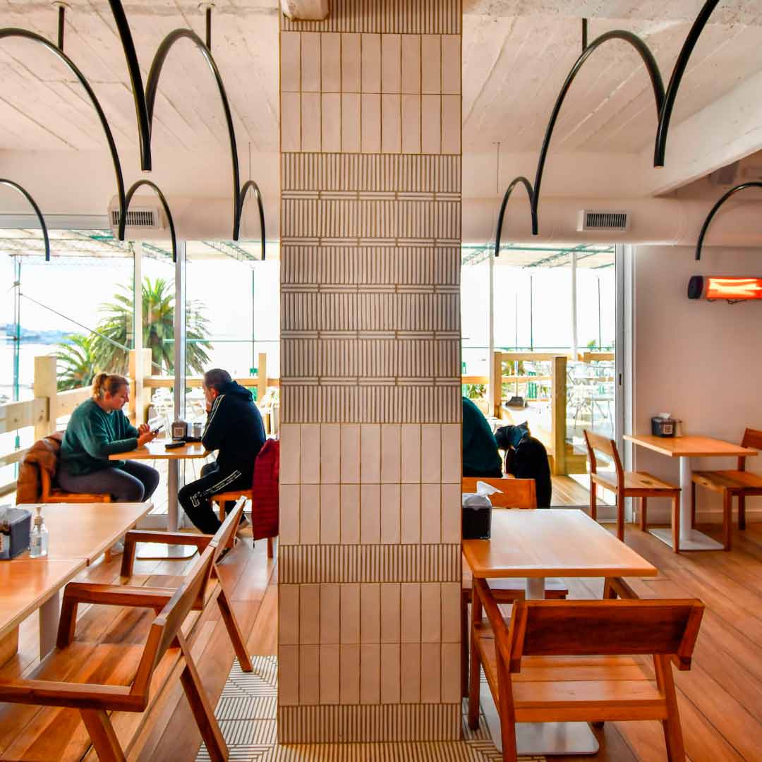 Ed è qui che entra in gioco uno degli abbinamenti per eccellenza: il legno e il bianco. Tipica dello stile nordico e mediterraneo, a seconda del complemento, questa unione di materiali e colori favorisce atmosfere calde e accoglienti. Gli architetti Charo Rodríguez e Omar Salik, insieme al distributore Lecer, hanno dato questo tocco a questa filiale del Café El Cóndor sulla costa vicino a Güemes, a Mar del Plata.