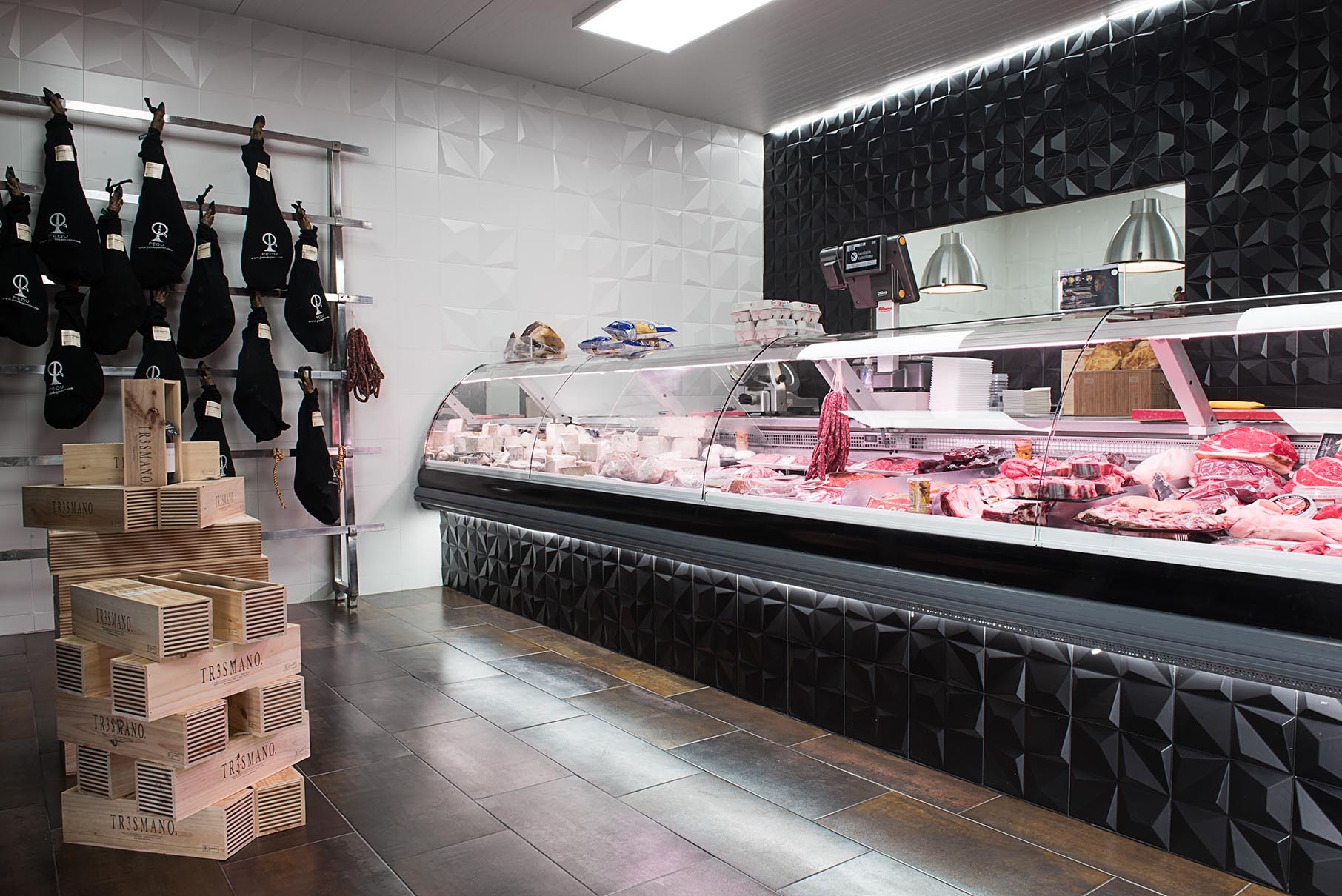 Carnivore Instinct avevano bisogno di una decorazione d'interni che fosse all'altezza del prodotto che offrono e, quindi, in Dune hanno trovato il design perfetto per inserire il concetto di gastronomia gourmet in uno spazio unico. In questo senso, la Macelleria utilizza i pezzi Multishapes Black per creare un banco carne che eleva il prodotto alla massima potenza, creando così uno spazio espositivo che cattura l'attenzione di qualsiasi cliente.Questa stessa piastrella viene utilizzata anche come rivestimento in gran parte del negozio. In quest 'area di Carnivore Instinct, le piastrelle Shapes White, Origami White, Japan White e Kyoto White sono perfettamente combinate per creare una sensazione di movimento costante.