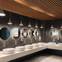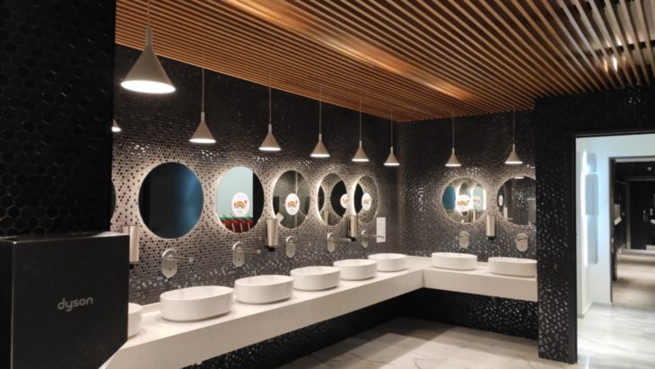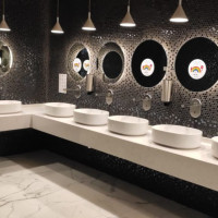 Non potevano quindi mancare i bagni di questa nuova area, progettata da CBRE Architects. Generare una brand experience intorno al centro commerciale è stato il compito principale, riuscendo così a non lasciare nessuno indifferente. Quindi, l'elemento chiave per creare l'effetto sorpresa è stata la scelta del mosaico Hip Hop per il rivestimento della parete.