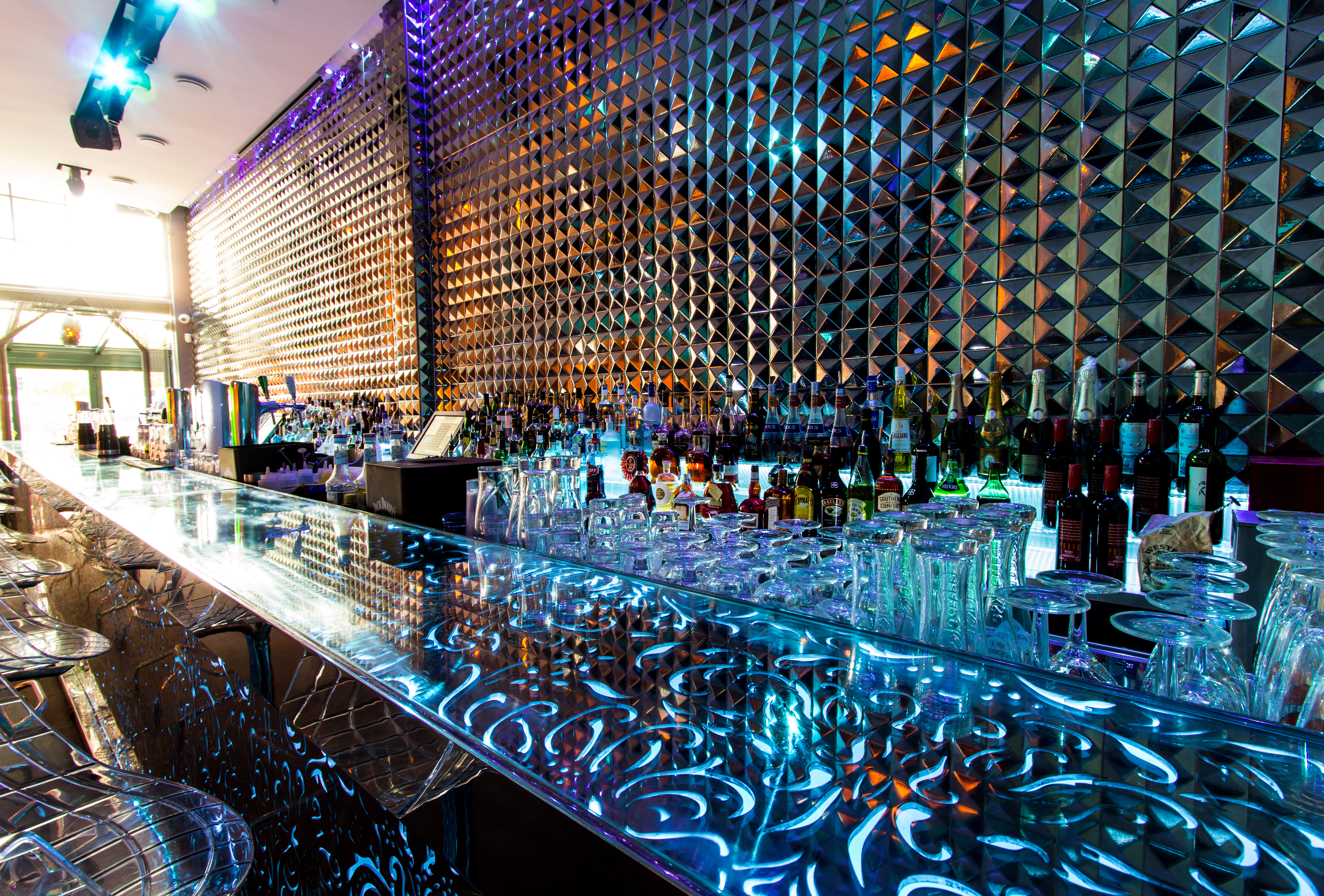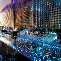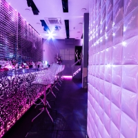 Luminaa è un cocktail bar e ristorante di Amsterdam. Il cibo, i cocktail e la musica vi porteranno in un'altra dimensione. Anche l'arredamento non è da meno. Innanzitutto, la parete del bar è rivestita con la piastrella Platinum Keops. Questa piastrella, in PVD argento e formato 3D, conferisce un'estetica molto moderna. Inoltre, le sue finiture aggressive a punta contrastano con la parete opposta. Questa utilizza la piastrella White Pad, con la sua finitura 3D, per dare un senso di calma e modernità con il suo originale effetto cuscino. Entrambi i pezzi sono ideali per le aree di svago come Luminaa.