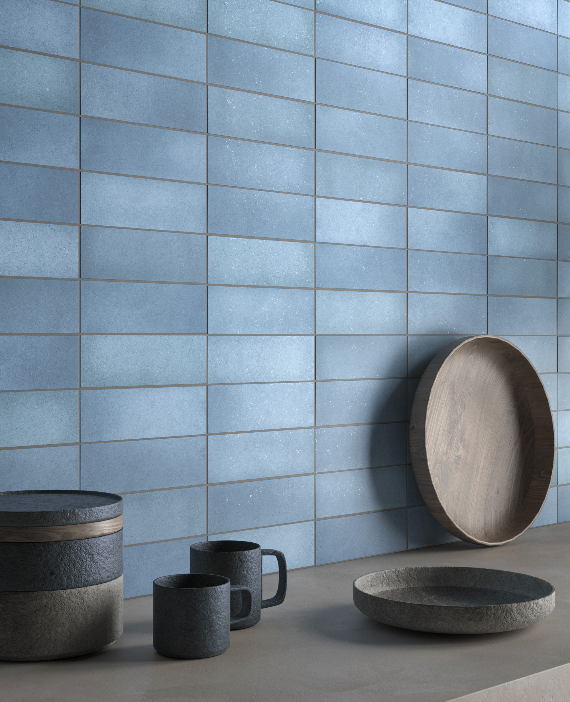 Revestimiento cerámico en formato 6,5x20cm en pasta blanca que destaca por su acabado mate de inspiración pétrea y carácter volcánico. Esta tonalidad azul intensa evoca los esmaltes tradicionales, reinterpretados con una mirada contemporánea. Un color versátil que añade profundidad, elegancia y un aire artesanal al espacio gracias a sus pequeños destellos brillantes.