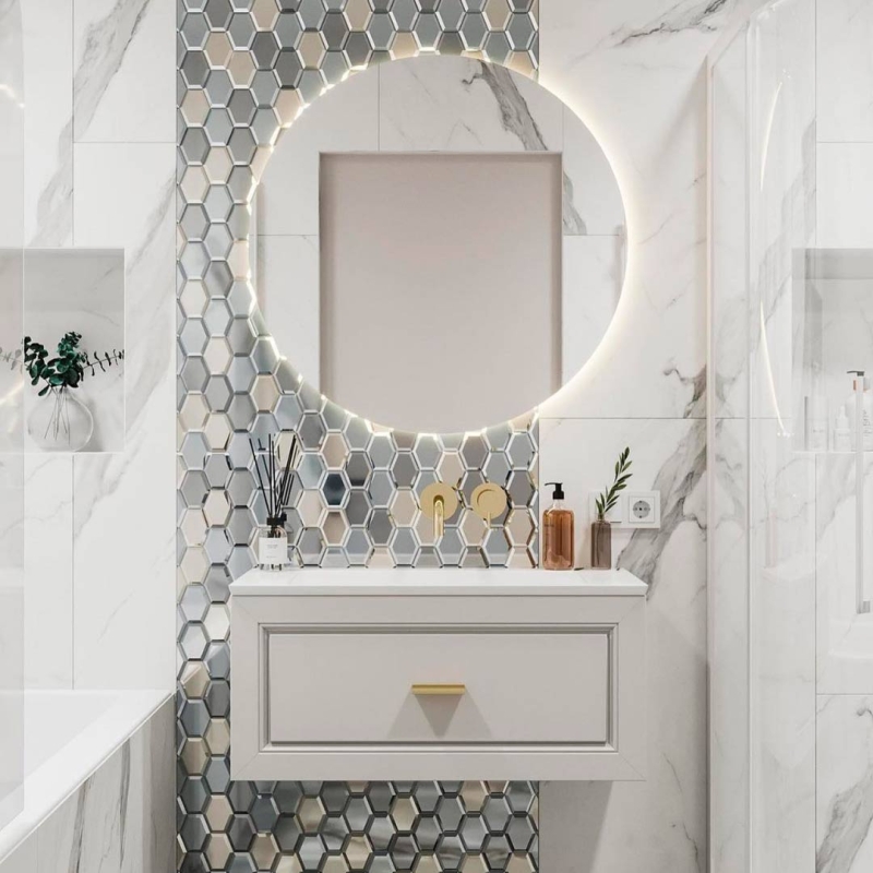 Combínalo con cualquier azulejo liso o con diseño de mármol y realza tu estancia, aportando un toque de distinción.