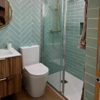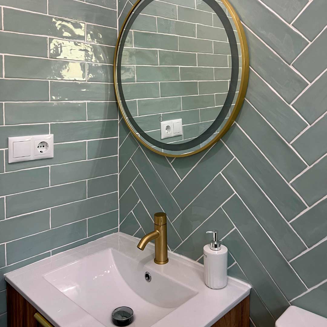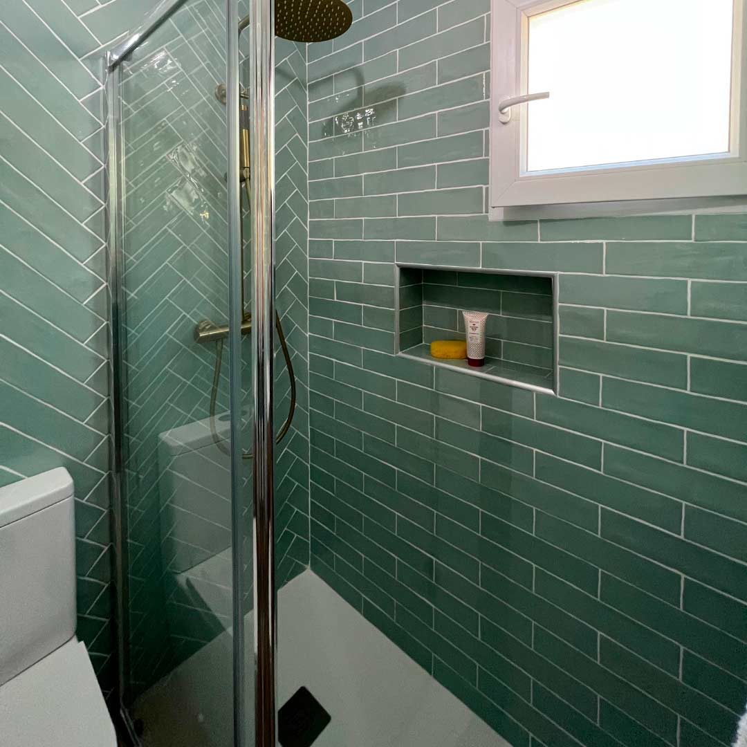 Espectacular proyecto de reforma realizado por Lightker®️| Azulejos Online, donde nuestros azulejos Altea Anis aportan frescura y personalidad al espacio. La clienta se inspiró en una imagen de Pinterest que reflejaba su deseo de crear un espacio en tonos verdes aquamarina que le transmitiera calma y serenidad, con un marcado toque mediterráneo.