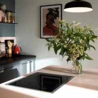 Uno de los aspectos más destacados de Berlin Flamingo Matt es su versatilidad. A pesar de su color, lejos de limitar la decoración, abre nuevas posibilidades estilísticas. En esta cocina, el rosa dialoga de forma excepcional con el gris antracita de los muebles, generando un binomio sofisticado y actual. Pero también interactúa con los detalles en negro, creando contraste y aportando un aire moderno y ligeramente industrial. El resultado es un ambiente equilibrado, cálido y dinámico, donde el rosa deja de ser un tono secundario para convertirse en un elemento diferenciador.