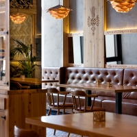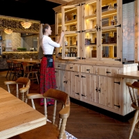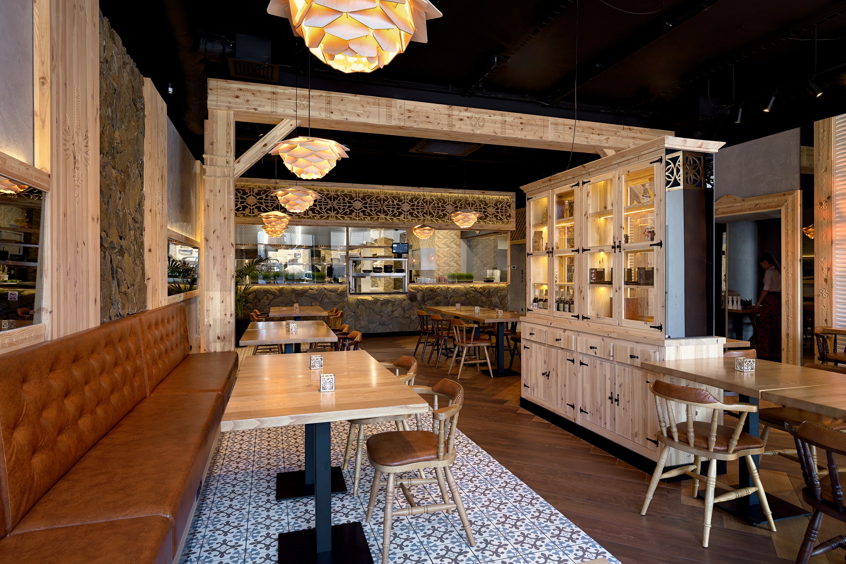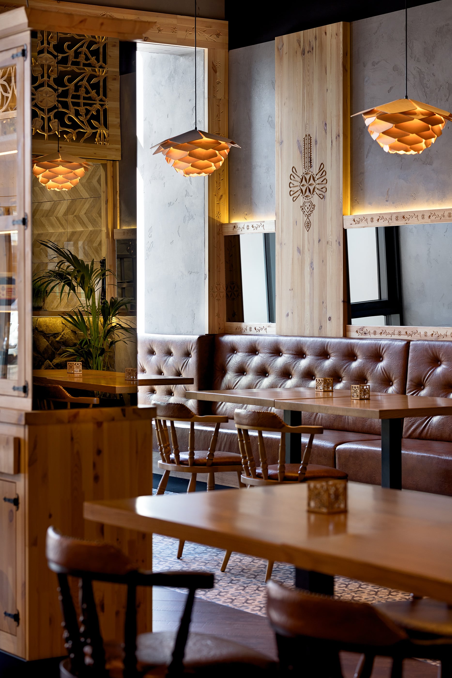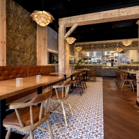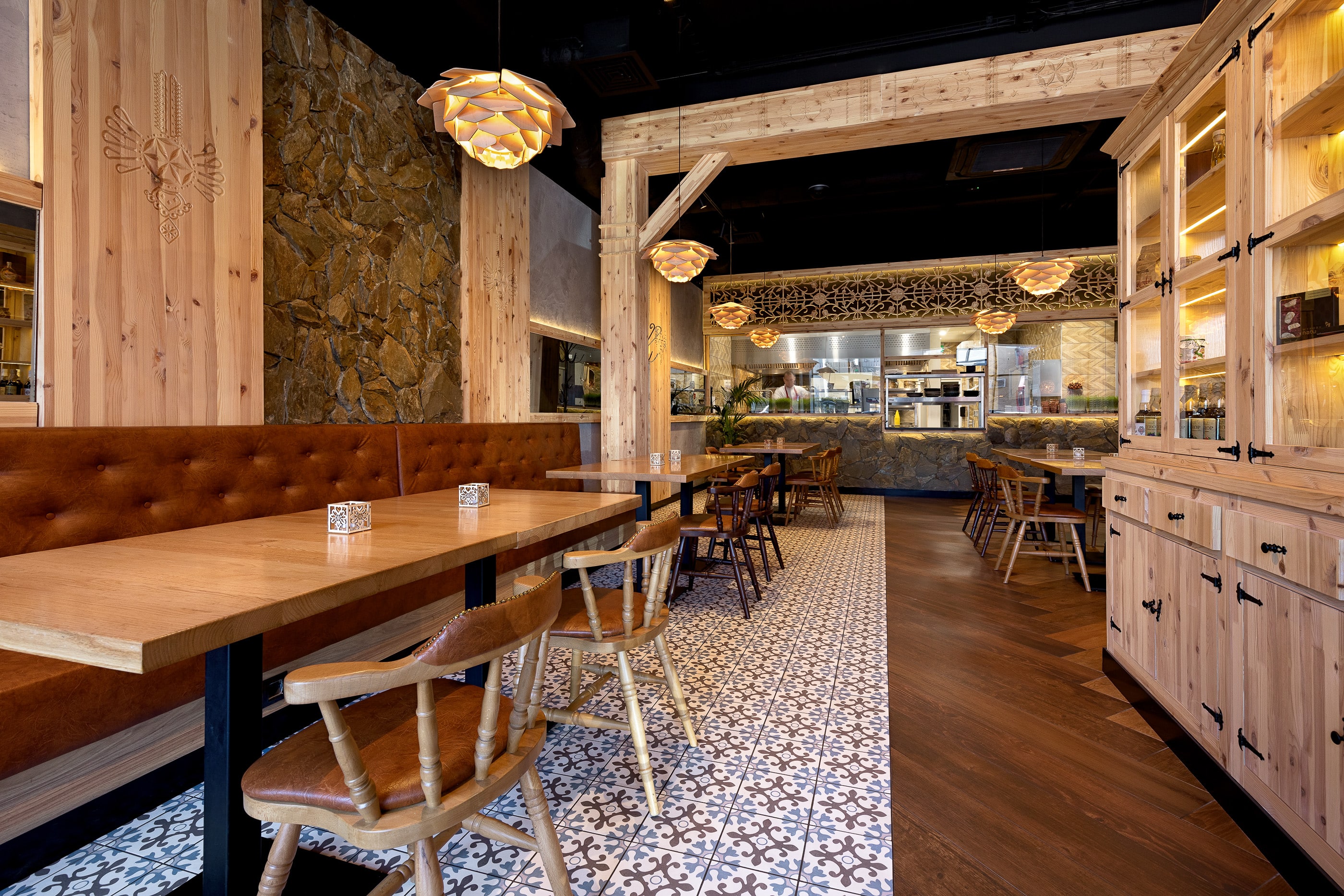 Este restaurante, ubicado en Kalisz (Polonia), cuenta con cerámica Dune en su interior. Un estilo rústico y tradicional que consigue avivar el espíritu montañés.