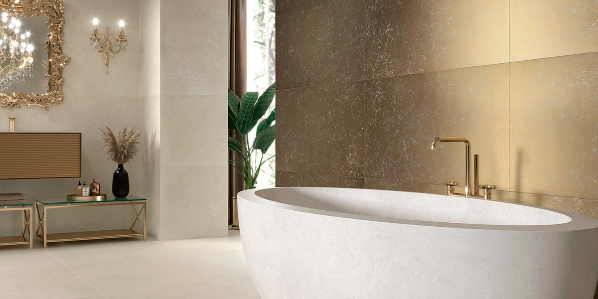-Плитка с Металлическими Отделками. Металлические отделки становятся все более популярными в дизайне интерьеров роскошных отелей. Плитка с отделками из золота, серебра, меди и бронзы добавляет элемент гламура и изысканности в любое пространство. Она идеально подходит для создания драматичных акцентов в фойе, барах и ванных комнатах. Отражения и блеск металлических отделок могут преобразовать общественную зону в впечатляющий центр внимания, привлекая взгляд и предлагая визуально богатый опыт.