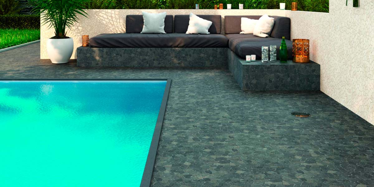 5. Стильные экстерьеры. Террасы, сады и зоны бассейнов всё чаще облицовываются керамогранитной мозаикой в противоскользящих форматах, доказывая, что функциональность и дизайн могут идти рука об руку.