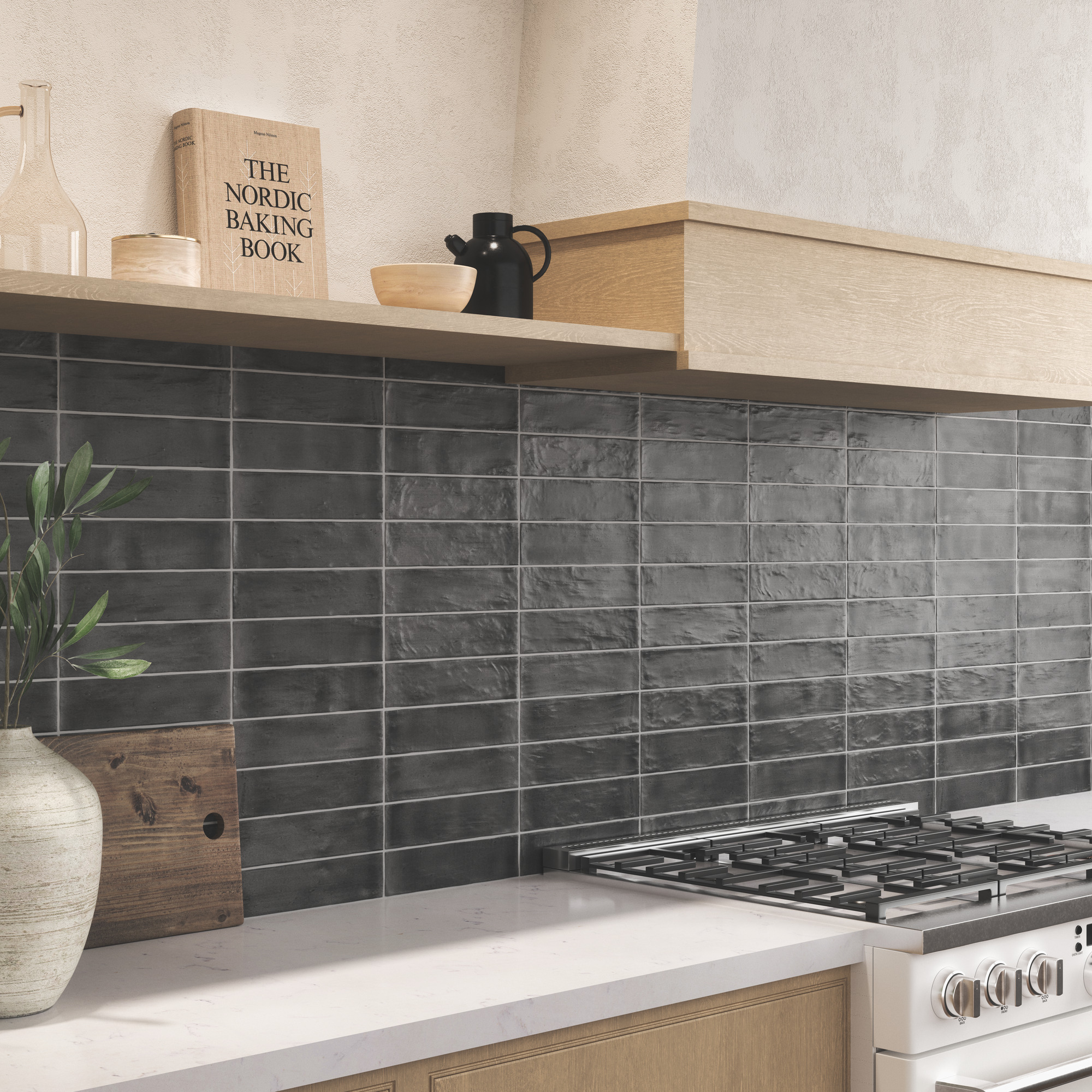 Керамическая плитка из белой массы формата 6,2×25 см с матовым сатиновым покрытием типа «eggshell» и ремесленной текстурой, имитирующей ручную работу с глиной. Оттенок Уголь отличается глубиной и сдержанностью, добавляя визуальную насыщенность и выразительные акценты в любом интерьере. Цвет с характером, подчёркивающий материальное богатство коллекции.