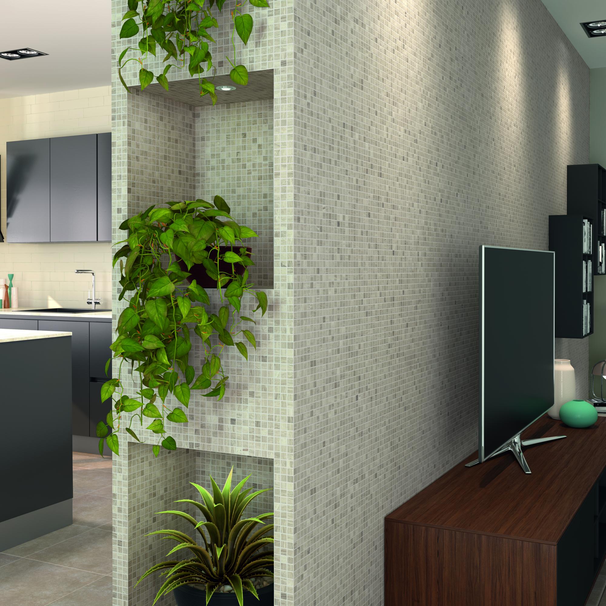 Мозаика из натурального камня, которая отличается простотой и мягкостью цветов. Декоративная, но сдержанная и вневременная изюминка.