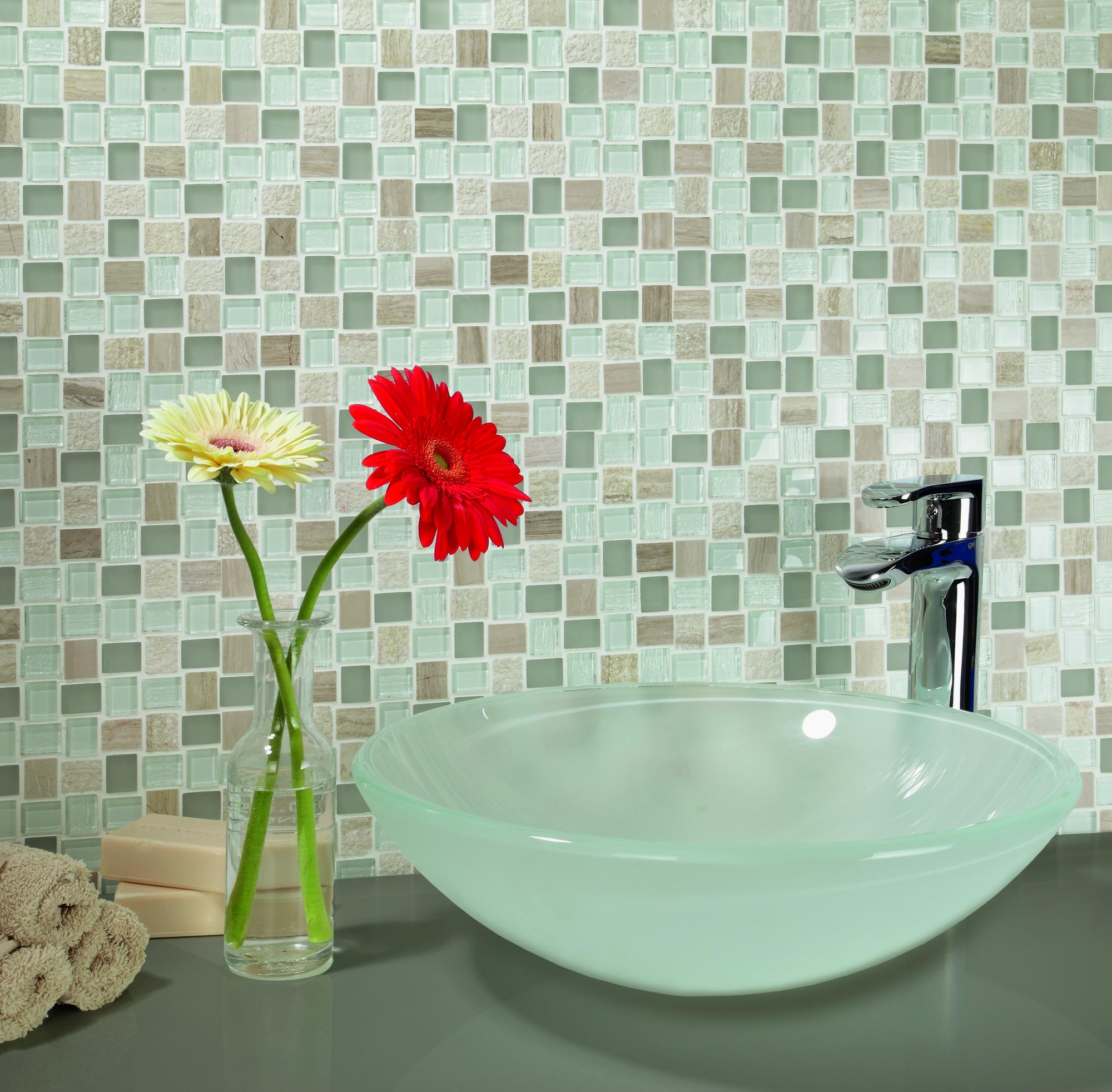 Хрупкая мозаика в нейтральных и натуральных тонах. Смесь из камня и стекла, свободно сочетается с любой плиткой. Оригинальное расположение плиточек превращает этот материал в идеальную опцию для подчеркивания зон любого пространства.