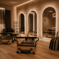 Отделка с эффектом древесины в медовых тонах привносит ощущение тепла, контрастируя с техническим характером спортивного оборудования. Этот приём смягчает пространство и делает его более дружелюбным, отходя от холодной эстетики традиционных спортивных залов. В результате создаётся среда, где благополучие не только тренируется, но и ощущается через дизайн.