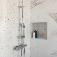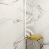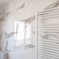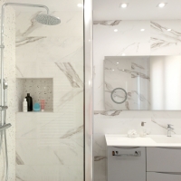 На первом месте стоит ванная комната, полностью облицованная мрамором. С плиткой из коллекции Calacatta создается элегантная и пленительная атмосфера. Супербелый тон плитки Calacatta Lux придает помещению чистоту. Кроме того, выбор мозаики Lux в качестве облицовки для душа - идеальный вариант для придания стиля и современности этой ванной комнате. Такой штрих точно никого не оставит равнодушным.