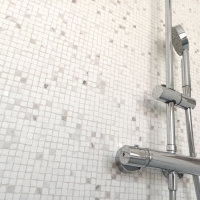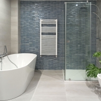 Хотя в трех ванных комнатах одинаковое напольное покрытие, каждая из них имеет уникальное оформление. Благодаря игре света и сочетанию различных мозаик и плиток можно добиться широкого разнообразия стилей.
