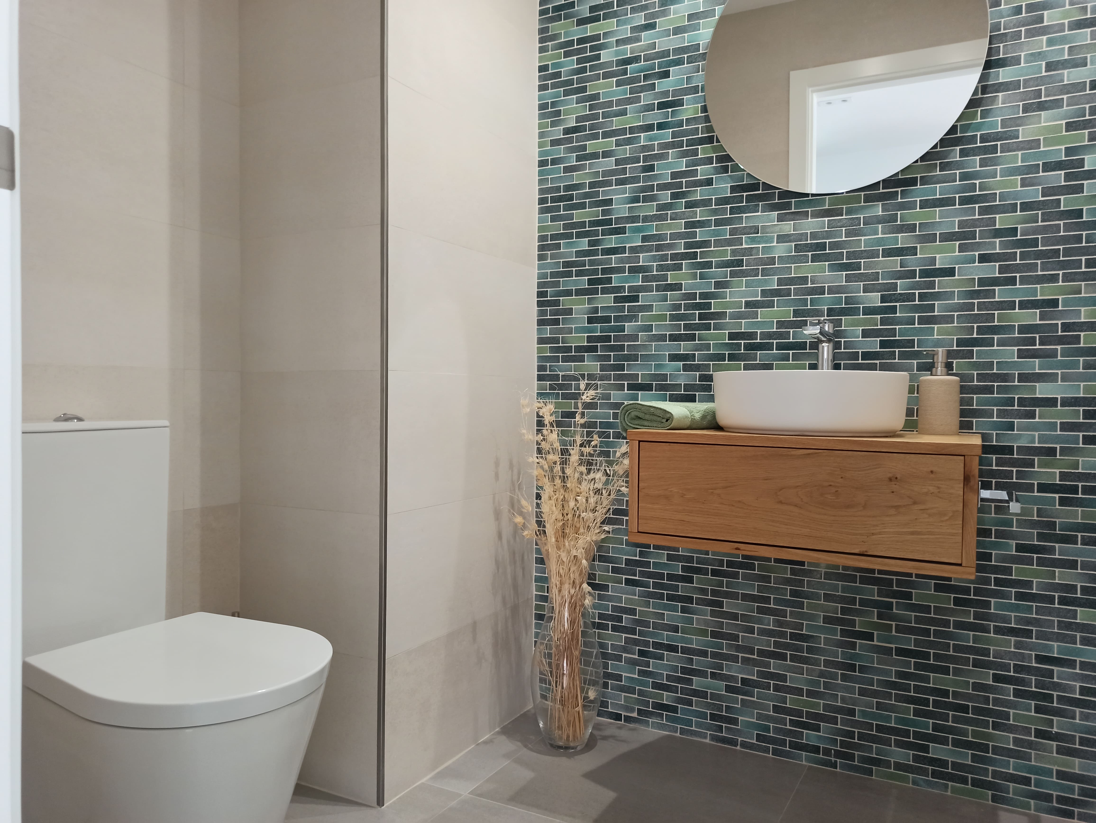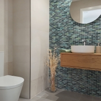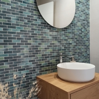 С другой стороны, есть ванные комнаты, в которых зеленые и синие тона мозаики сочетаются с песком - хроматическим разнообразием, которое, несомненно, напоминает нам о Средиземном море. Сочетание мозаики Deep или Poeme с дымчатой плиткой Arena и Hipster создает ощущение тепла и уюта, которые необходимы в любом доме. Благодаря сочетанию природных элементов, тщательному выбору облицовочных материалов и мебели, а также тщательному планированию аксессуаров, дизайнеры Dune создали уютные и гармоничные ванные комнаты, которые вдохновляют на спокойствие и хорошее самочувствие.