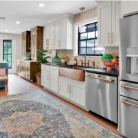 Американский дизайнер интерьеров Глория Стаатс из своей студии «Peace of mind desing» разработала дизайн этой вневременной кухни, которая идеально вписывается в стиль Urban Rustic, благодаря своей аккуратной и деревенской эстетике.