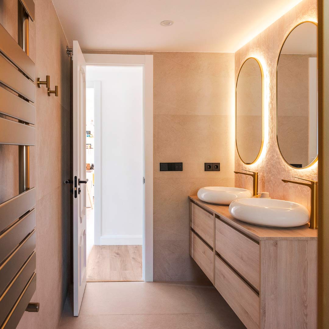 Светлая и изысканная реконструкция ванной комнаты, где элегантность выражается через тонкий баланс текстур и оттенков. Проект строится вокруг женственной и утончённой палитры, в которой розовые тона выходят на первый план.