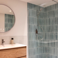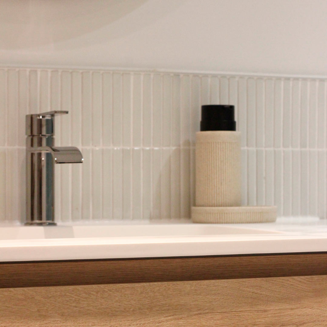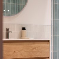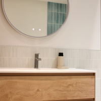 Этот проект реконструкции ванной комнаты делает ставку на простоту и функциональность благодаря тщательно подобранной керамике. Сочетание двух видов плитки создаёт светлое, свежее и сбалансированное пространство, где дизайн сопровождает повседневное использование с элегантностью и естественностью.