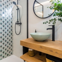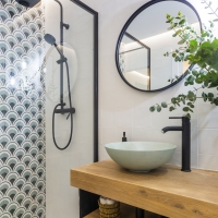 Эта ванная комната, расположенная в Валенсии, является ярким примером того, как современность и деревенский стиль могут прекрасно сочетаться друг с другом. Благодаря использованию предметов из коллекции Berlin студии дизайна интерьеров Majo Flores удалось создать теплую атмосферу. Более того, сочетание их с прямым светом, деревянной отделкой и мебелью в индустриальном стиле позволяет добиться неповторимой индивидуальности.